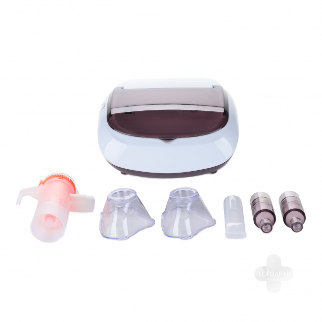 Благодаря плоскому корпусу и эргономичной системе хранения изделие отлично размещается в дорожной сумке. Во время путешествия можно не беспокоиться, что элементы прибора будут потеряны или повреждены. Модель снабжена четырьмя опорными ножками и пластиковой ручкой для переноски. В приборе предусмотрен поворотный клапан, регулирующий интенсивность воздушного потока. Резервуар для лекарств имеет измерительную шкалу, обеспечивающую точность дозировки препарата.