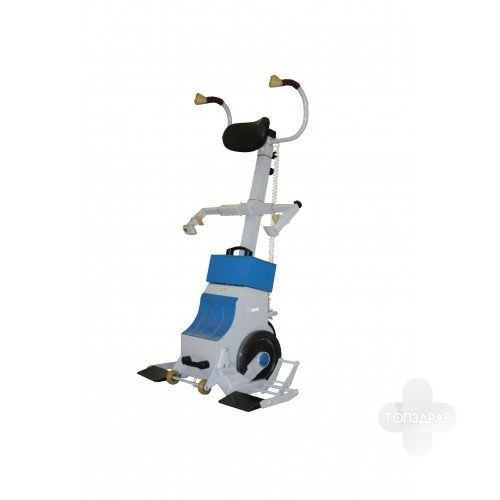 Следите, чтобы руки перевозимого инвалида находились на коленях и не свисали с внешней стороны подлокотников кресла коляски. Разведите на электро-подъёмнике в стороны опоры колёс и выставьте упоры по колее коляски. Затем, соблюдая, по возможности, совмещение продольных плоскостей симметрии лестничного подъёмника и коляски, подведите коляску вплотную к опорам лестницехода, после чего инвалидную коляску поставьте на тормоза.